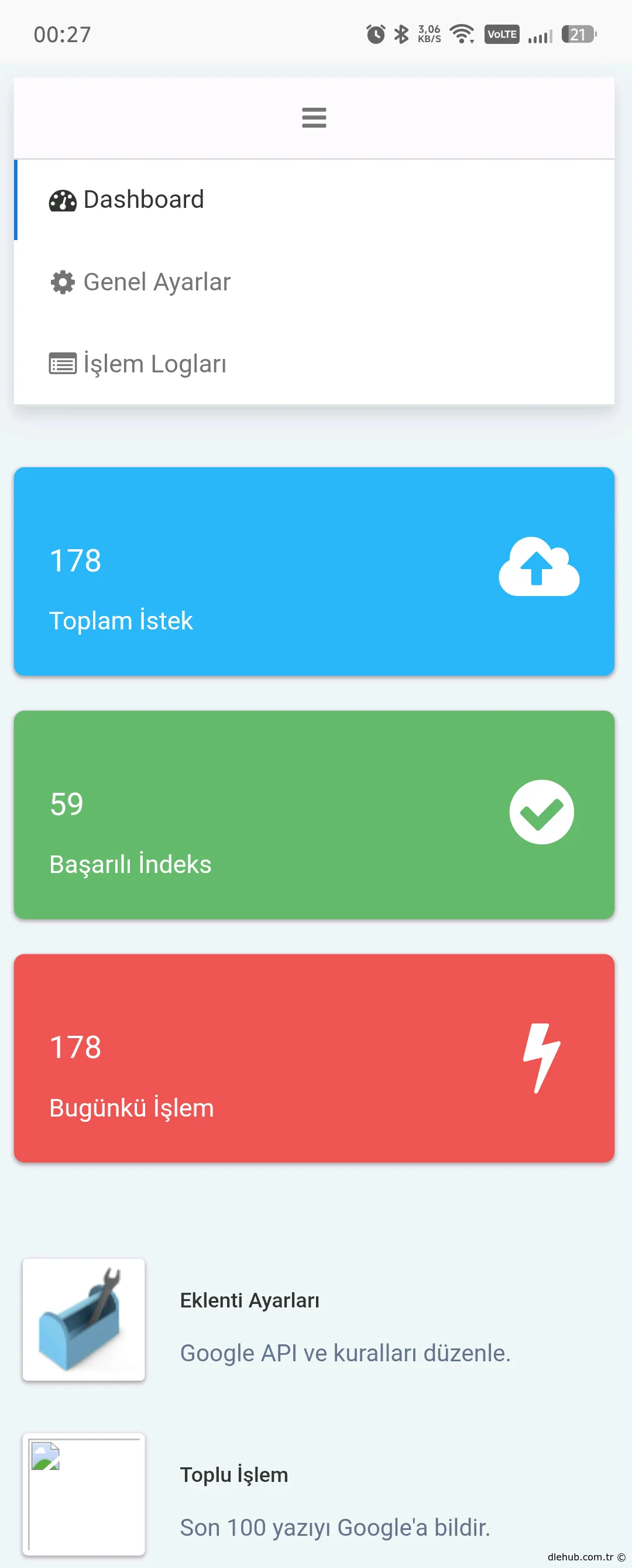 Şimdi admin panelinizden eklentiye girin, Dashboard sekmesine gelin ve "Son 100 Yazıyı Gönder" deyin. İşlem Logları sekmesinde yeşil renkli "200 BAŞARILI" yazılarını görüyorsanız, işlem tamamdır!