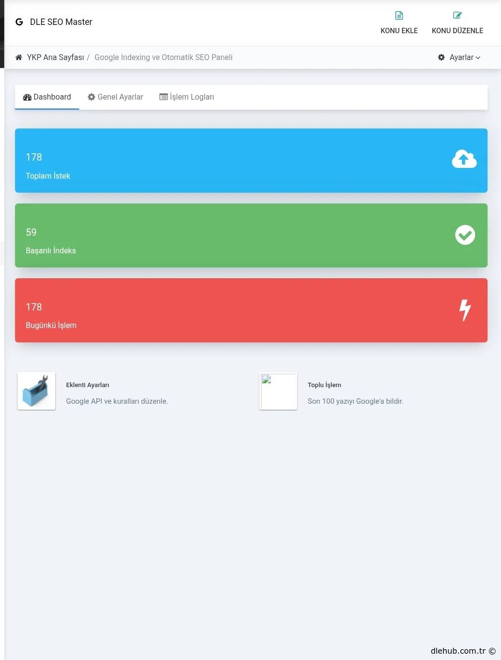 - Toplu Gönderim: Mevcut içeriklerinizi tek tıkla Google kuyruğuna sokar.
